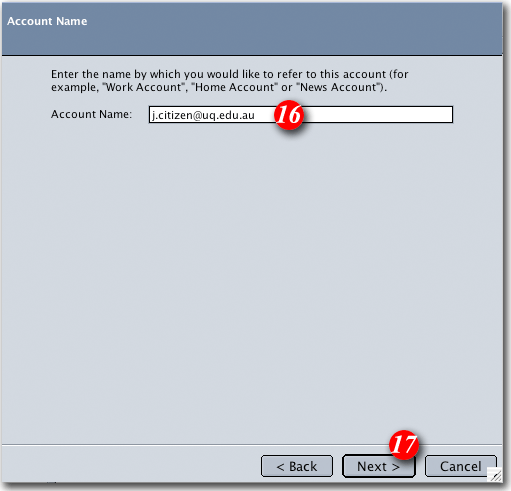 | 16)Type in a name for the account which should be something to help you recognise it |