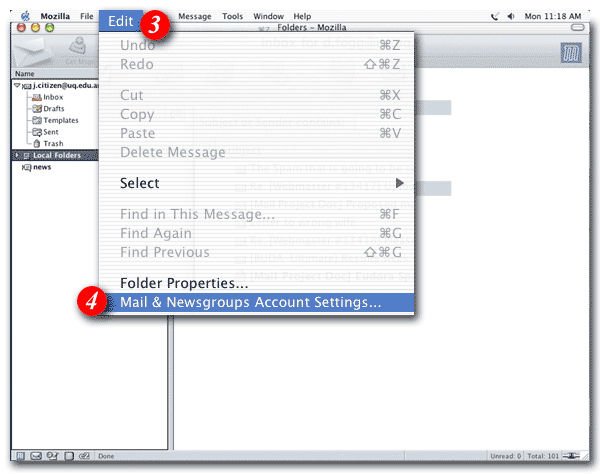 | 4)Select 'Mail & Newsgroups Accounts Settings...' from the drop-down list |
