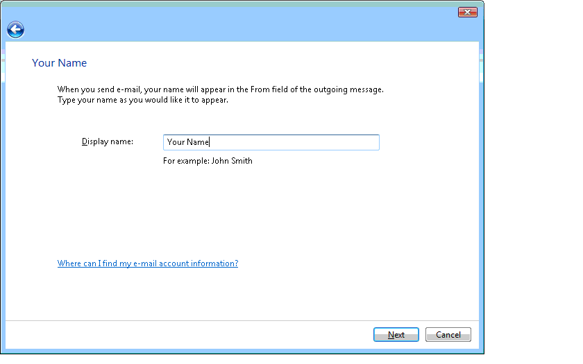 | 3) Enter your complete e-mail address, and click Next. |