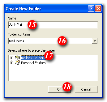 | 15)Enter a folder name i.e. Junk Mail |